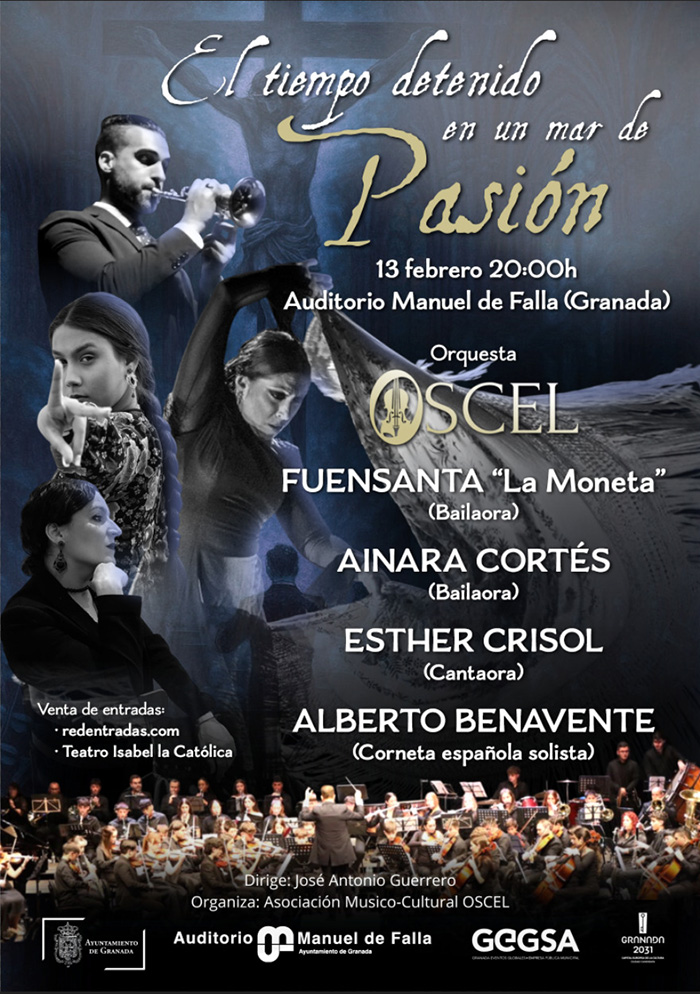 En este espectáculo interviene la Orquesta OSCEL, junto con los siguientes artistas: la bailaora Fuensanta “La Moneta”, la bailaora Ainara Cortés, la cantaora Esther Crisol y el Corneta española solista Alberto Benavente.